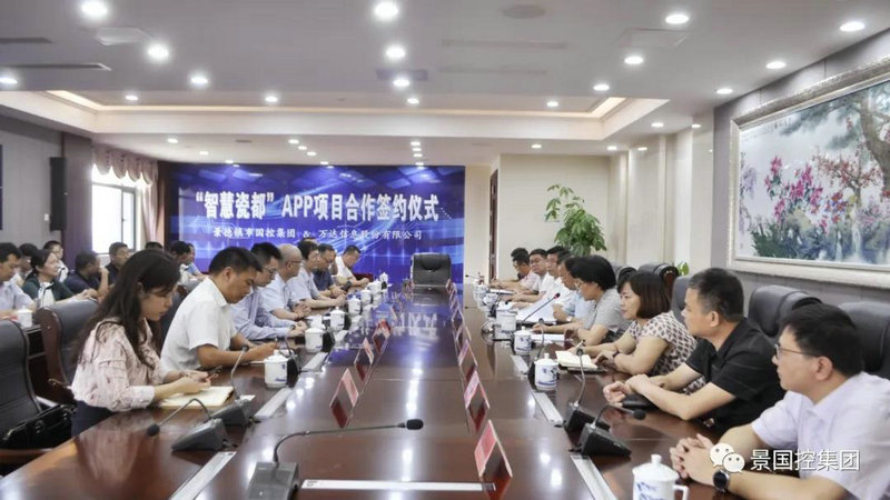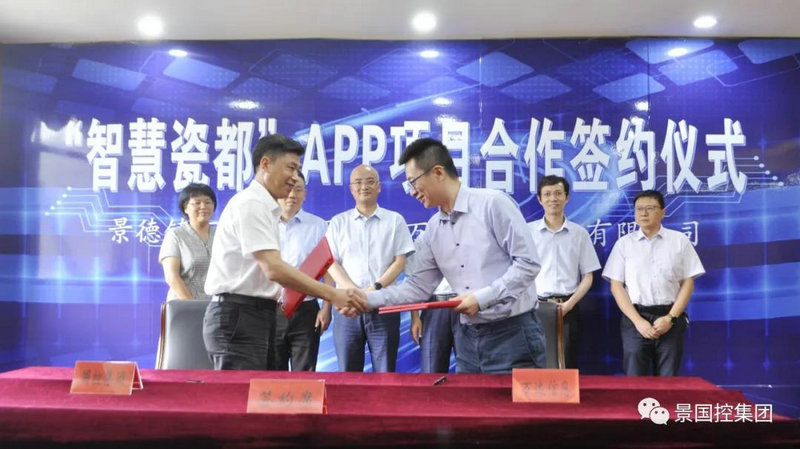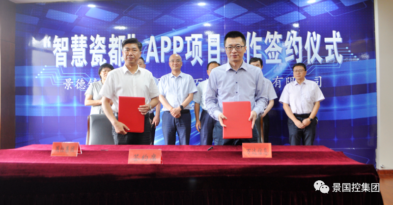 隨后國控集團簽約代表陳望賢與萬達信息股份有限公司簽約代表王兆進在會議現(xiàn)場簽訂“智慧瓷都”APP項目合約。