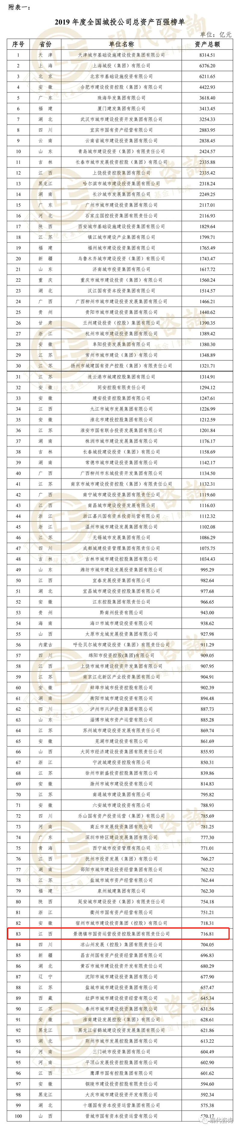 9月17日,全國城投公司百強(qiáng)榜單發(fā)布,集團(tuán)以總資產(chǎn)(2019年度總資產(chǎn)計)716.81億元,排名第83位。