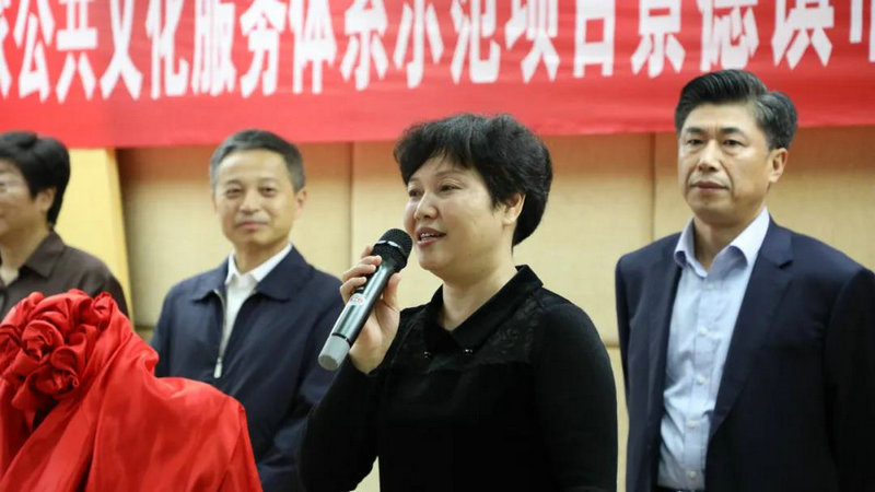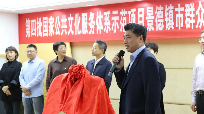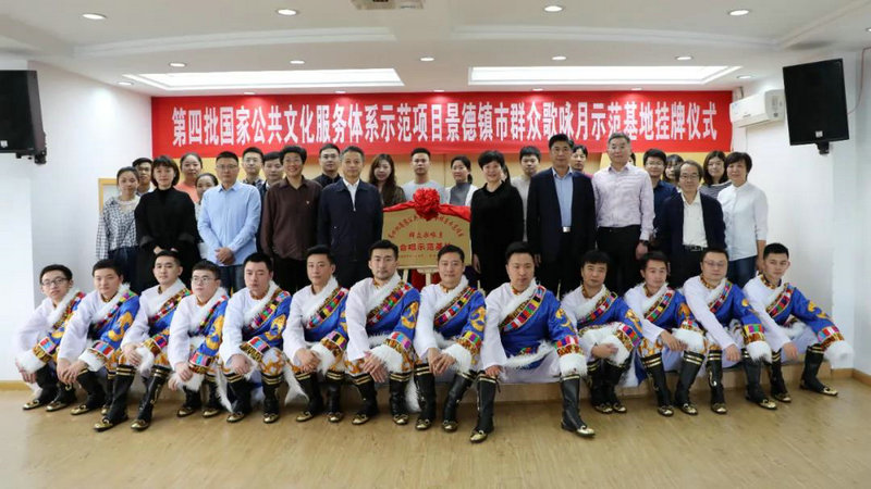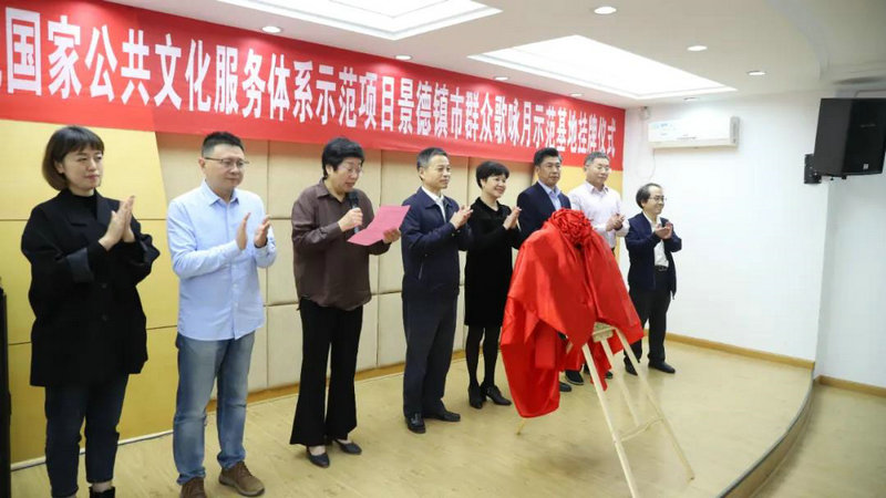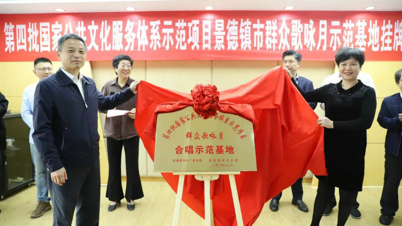 儀式上,吳林和江妙民共同為第四批國家公共文化服務體系示范項目——景德鎮(zhèn)市群眾歌詠月活動“示范基地”揭牌。