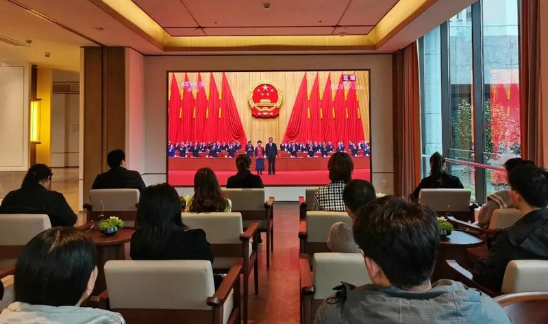市國資委黨委委員、副主任、省陶瓷工業(yè)公司黨委書記、市國控集團轉(zhuǎn)型發(fā)展領(lǐng)導(dǎo)小組辦公室主任吳雄飛,市國控集團黨委副書記、總經(jīng)理陳望賢等集團領(lǐng)導(dǎo)班子成員,以及全體黨員干部職工收看大會盛況,認(rèn)真學(xué)習(xí)習(xí)近平總書記重要講話精神。