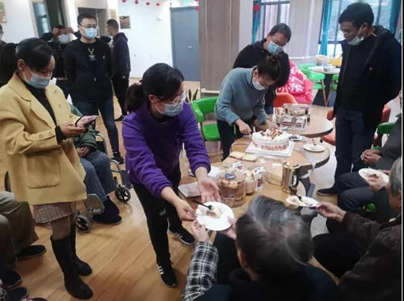 敬老院負(fù)責(zé)人熱情接待了黨員們,帶黨員們參觀了院內(nèi)環(huán)境,介紹了敬老院的大概情況,隨后到了老人的下午茶時(shí)間,黨員們送上準(zhǔn)備好的蛋糕、面包等食物,與老人們共用下午茶。老人們對黨員的到來表示歡迎,對黨支部的慰問表示感謝,紛紛表示黨員們的到來,讓他們感受到黨的溫暖。
