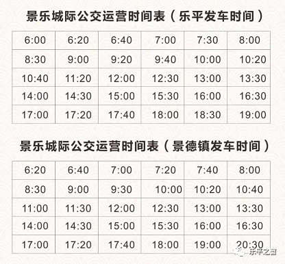 ▲景樂城際公交運(yùn)營時間表(發(fā)車時間)