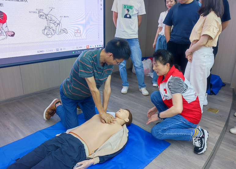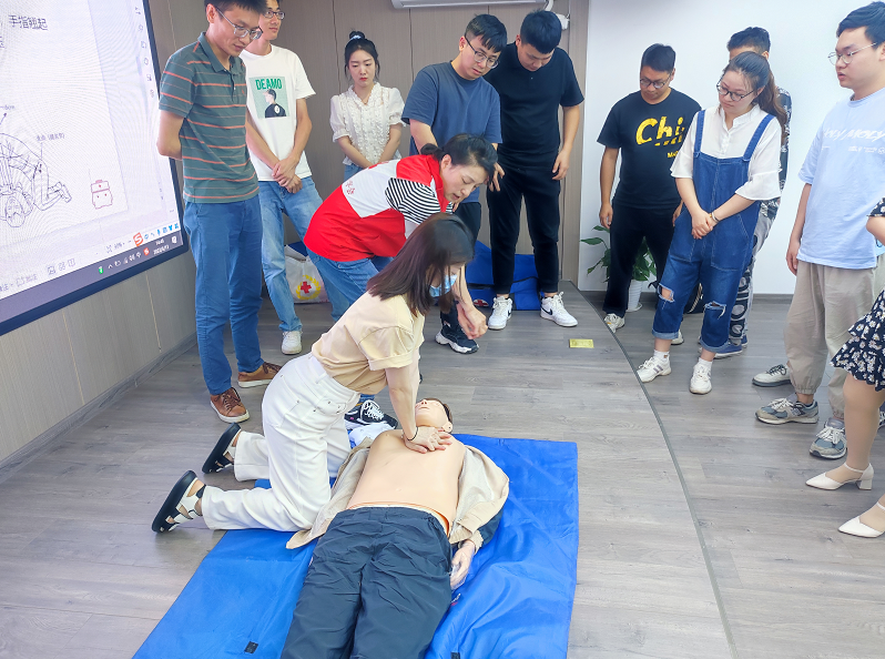為提高大家的應急操作能力,老師們專程用人體模型給大家演示心肺復蘇的整體操作流程,同時指導學員們進行現(xiàn)場演練,體驗心肺復蘇的實際操作,學員們認真聽講,踴躍參與實踐操作,學習熱情高漲。