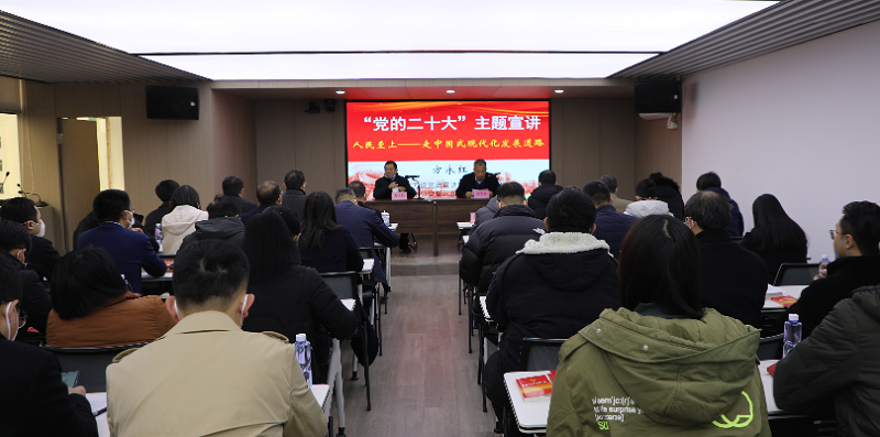 報告會上,方永紅首先簡要梳理了黨的二十大報告的邏輯關(guān)系,闡明了報告是我們黨對改革發(fā)展穩(wěn)定、內(nèi)政外交國防、治黨治國治軍的科學(xué)頂層設(shè)計,繼而結(jié)合世界現(xiàn)代化史、中國近現(xiàn)代史、中共黨史以及新聞熱點,對怎樣理解報告提出的中國式現(xiàn)代化做了分享交流。同時著重分析了中國式現(xiàn)代化的特點、本質(zhì)要求和前進道路上要牢牢把握的五項原則,號召受眾深刻領(lǐng)悟“兩個確立”的決定性意義,把思想和行動統(tǒng)一到黨中央的各項決策部署上來,在各自工作崗位上踐行習(xí)近平新時代中國特色社會主義思想。