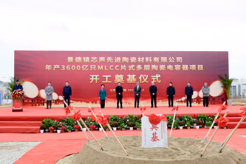 1月3日,新年上班第一天,芯聲微年產3600億只MLCC片式多層陶瓷電容器項目開工儀式在景德鎮(zhèn)高新區(qū)舉行。市委書記劉鋒出席儀式并宣布項目開工。市委副書記、市長胡雪梅,副市長高曉云,國家試驗區(qū)管委會專職副主任高翔,高新區(qū)管委會主任、昌江區(qū)委書記倪衛(wèi)春出席活動。市委副書記、市先陶辦主任吳雋講話。副市長、高新區(qū)黨工委書記羅文軍主持儀式并介紹項目總體情況。